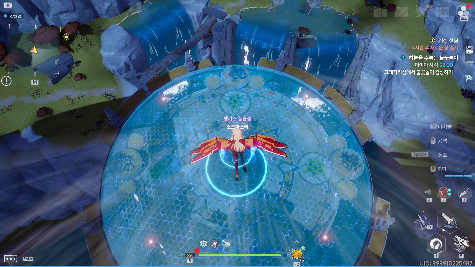 고래자리섬에서 뛰어내리면 저렇게 쉴드가 생긴 공중섬이 있다