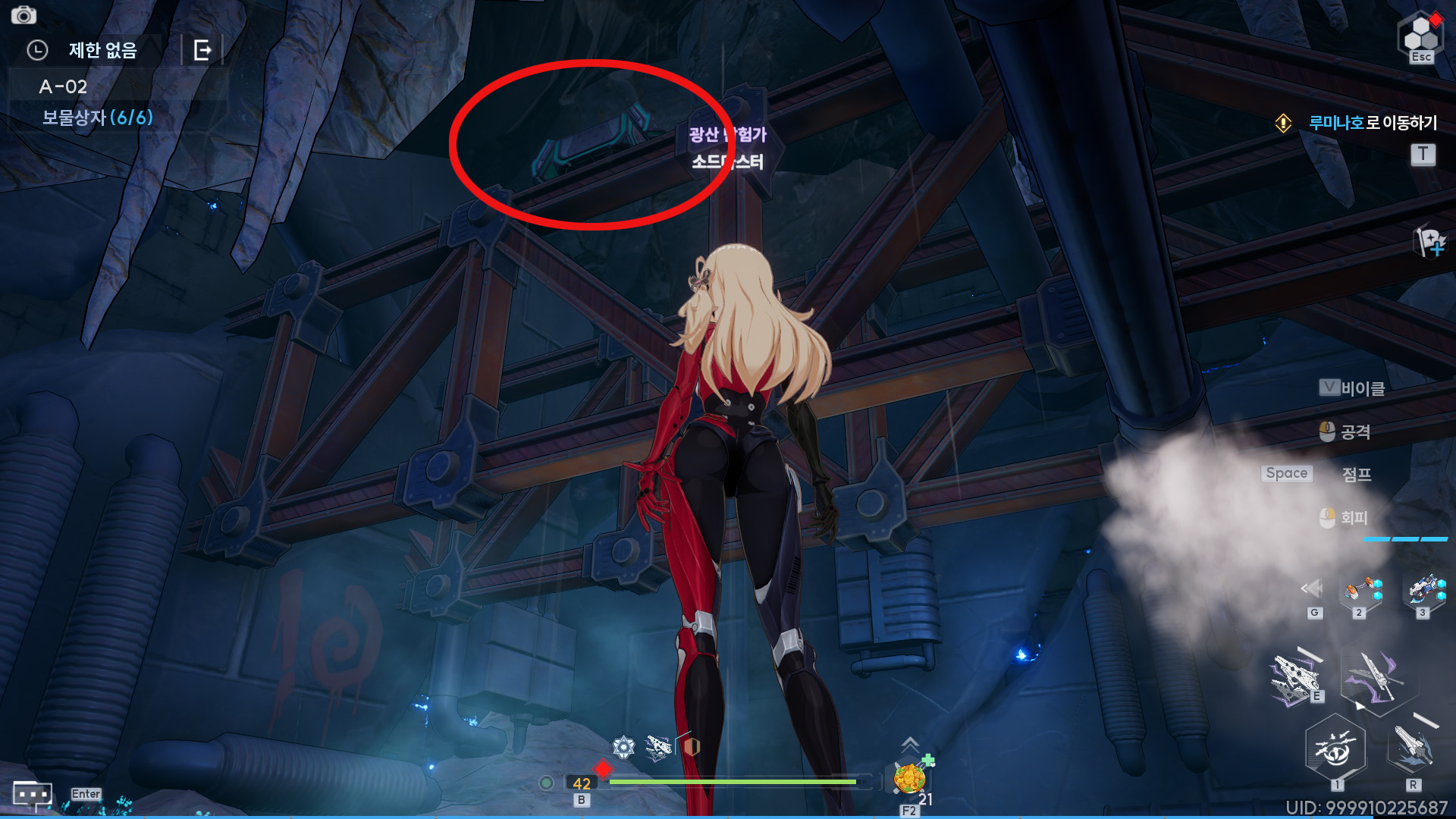 에너지 기어 중 옴니엄포를 이용해서 바위 위로 올라가면 된다