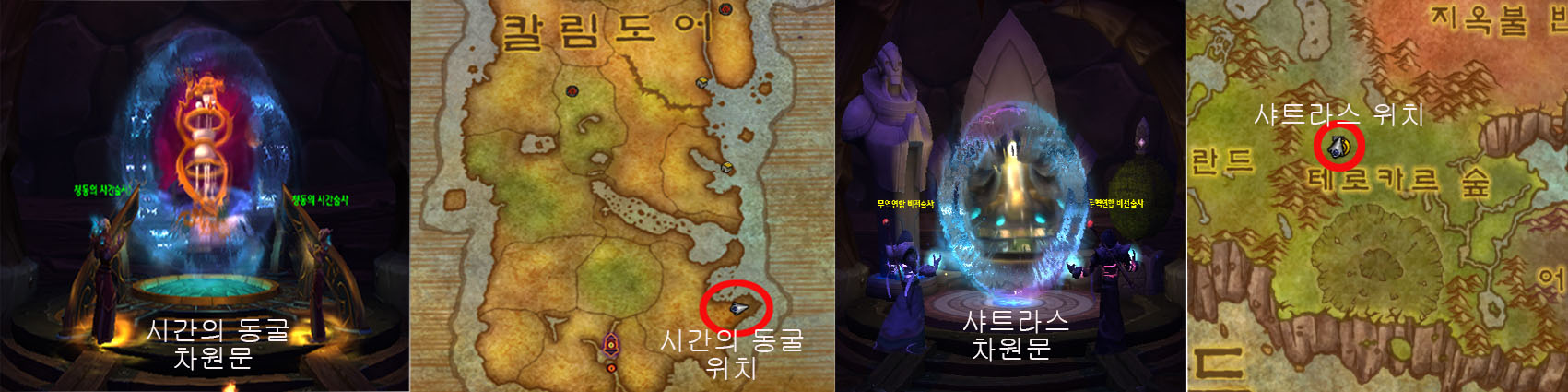 다음은 길잡이의 은신처에서 제공하는 차원문 종류와 위치이다
