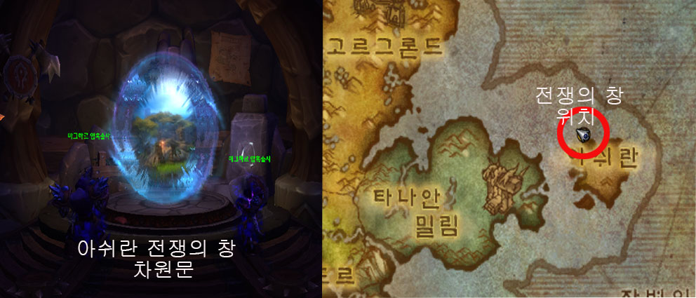 현재 와우 세계는 크게 아제로스, 아웃랜드, 드레노어 가 있다