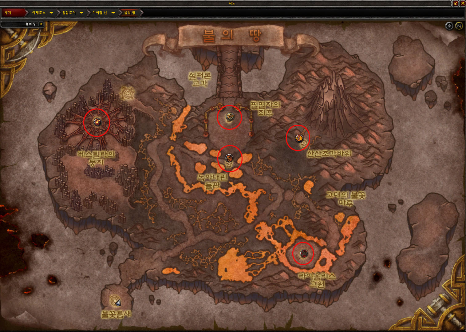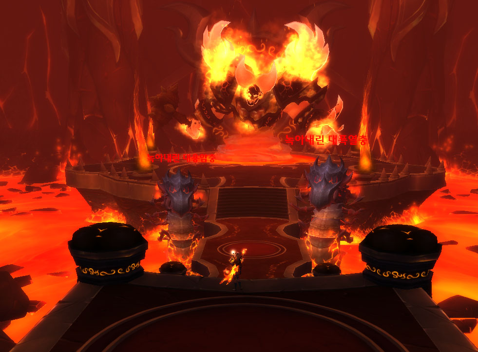불의 땅 레이드 던전은 각각의 네임드를 모두 처치해야 설퍼론 교각 즉 다리가 생성되어 라그나로스에게 갈 수 있다
