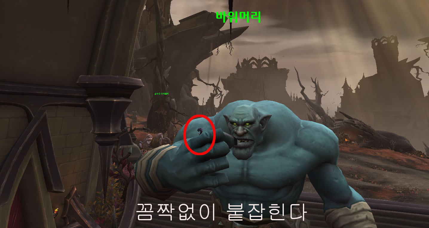 바위머리라는 NPC는 잿불지구의 문지기로 잿불지구로 들어가려고 하면 위 사진과 같이 한손으로 붙잡는다