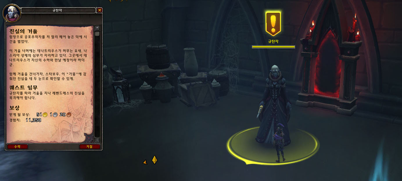 규탄자는 공포추적자를 멀리 떼어 놓고 유저에게 진실을 보여준다며 진실의 거울로 안내한다
