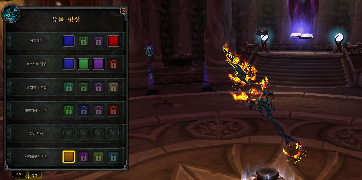 마법사 칠흑한기 히든 형상을 얻기위해서는 먼저 군단 유물을 선택해야한다