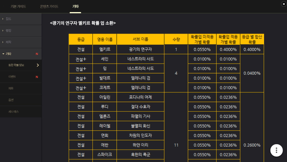 통합 확률 정보에서 확인 가능하다고 하니 급히 확률을 확인하러 가봤다