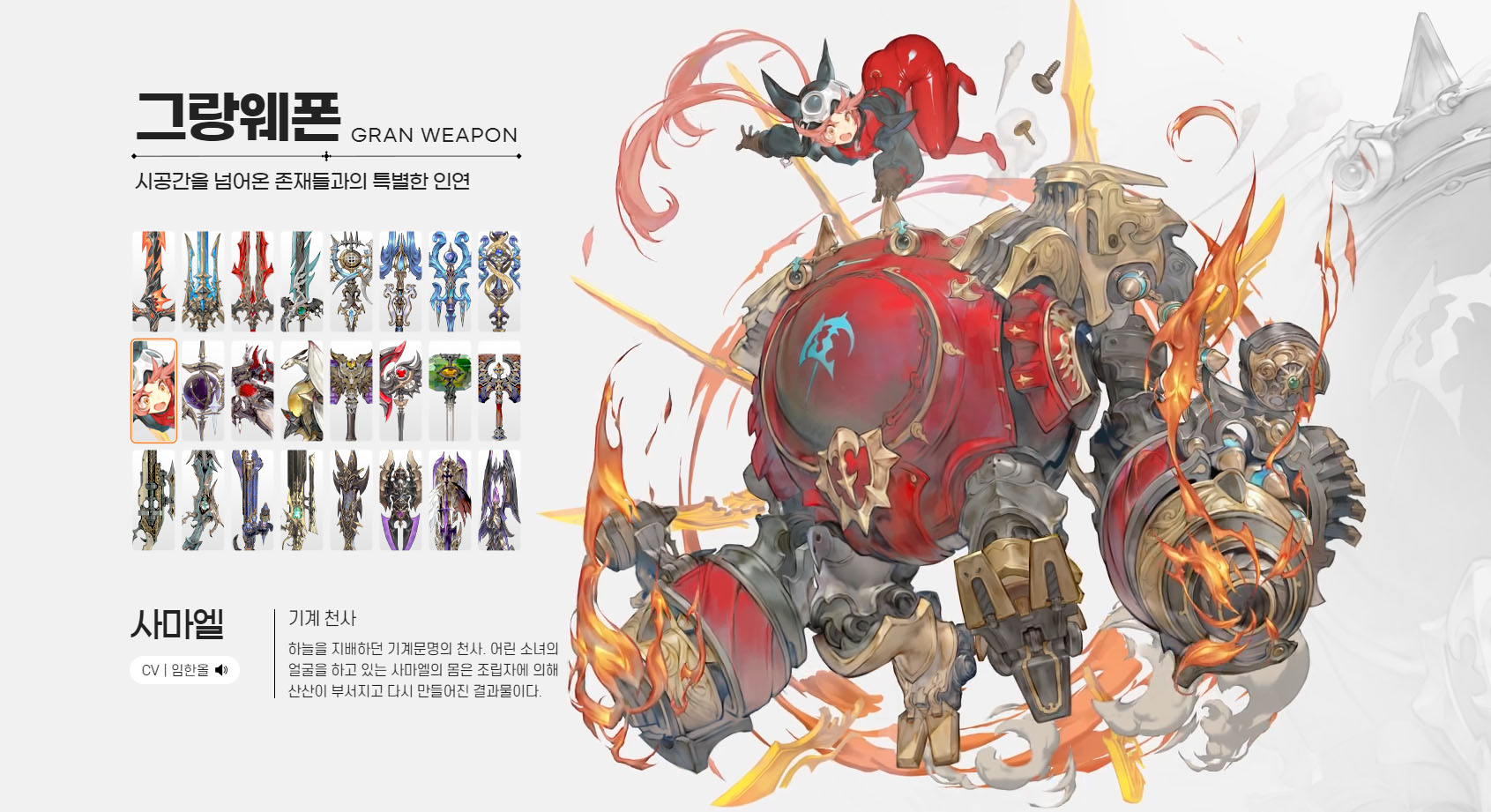 불속성 SSR 변신 그랑웨폰은 이미 잉그리드를 소개했지만 잉그리드는 근접 캐릭터의 변신 그랑웨폰이고 사마엘은 원거리 캐릭터의 변신 그랑웨폰이다
