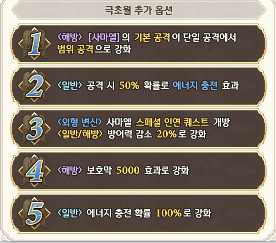 1초월만 하더라도 사마엘의 일반 공격이 단일 공격에서 범위 공격으로 강화된다