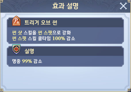 적에게 100% 확률로 10초 동안 실명 상태 부여