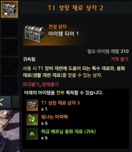 그리고 인벤에 빨간색 불이 들어와 있던 아이템레벨 310상자를 비로소 열 수 있다
