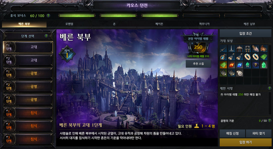 3단계로 올라가면 아이템레벨 310이 달성된다