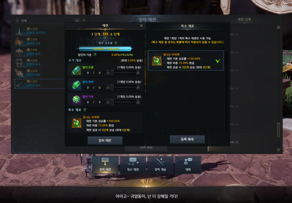 재련 NPC에게 가면 장비 계승을 할 수 있다
