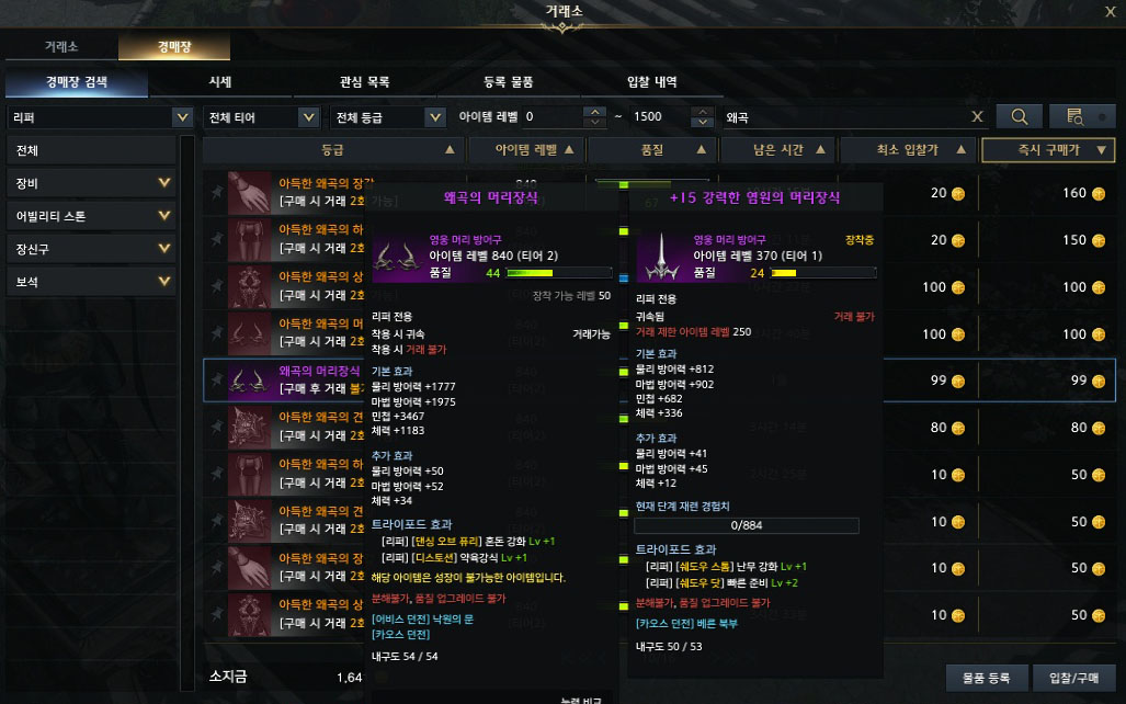99골드에 올라온 "왜곡" 아이템을 구입했다