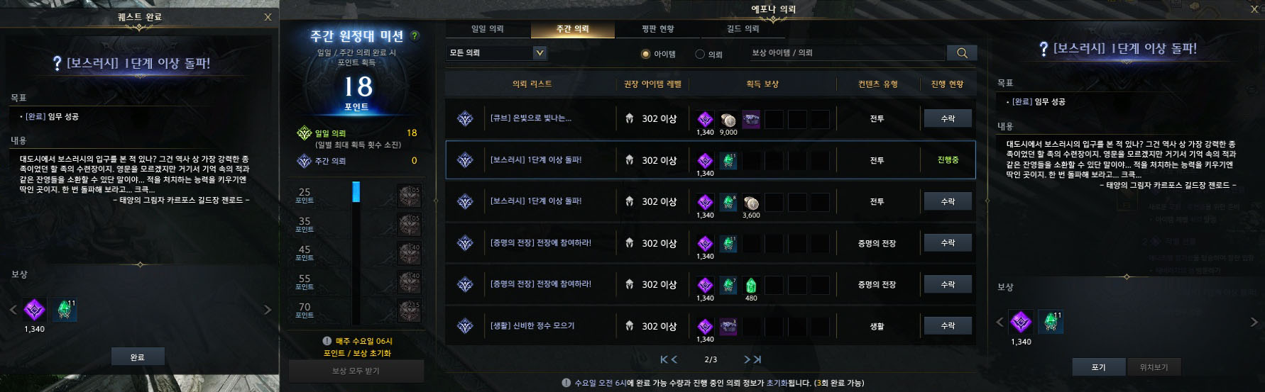 에포나 주간퀘 완료시 돌파석 11개를 얻을 수 있다