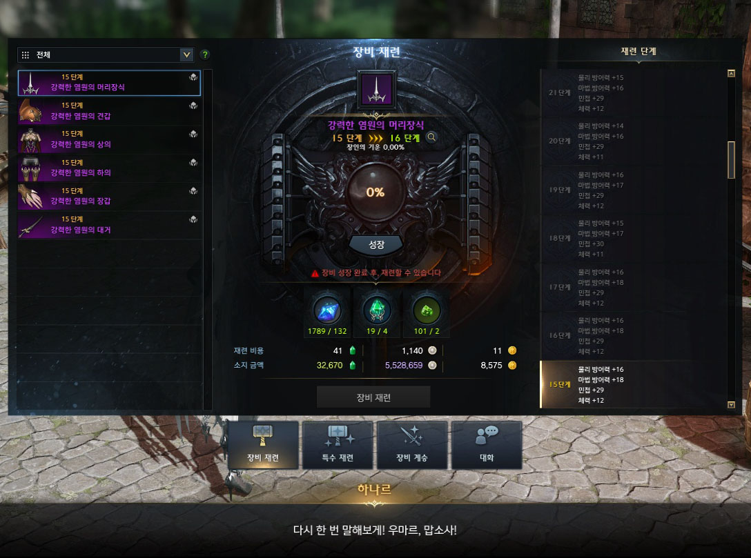하지만 로헨델에 가서 스토리를 밀기위해서는 무기 및 방어구 15강화정도 해야한다