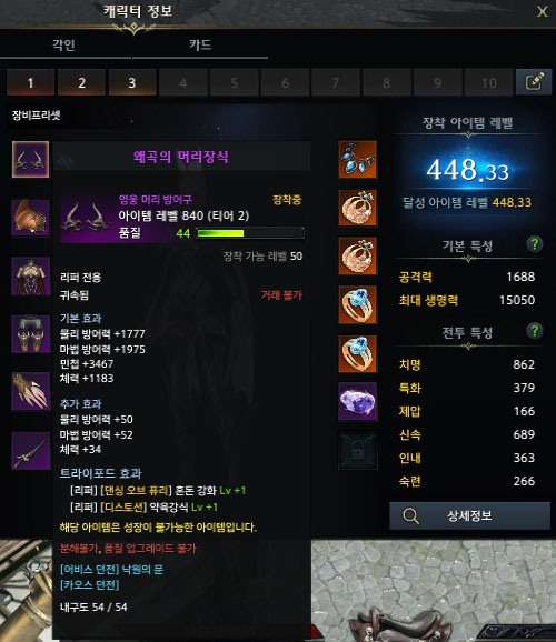 3가지 템은 착귀이며 아이템레벨이 800이 넘는다