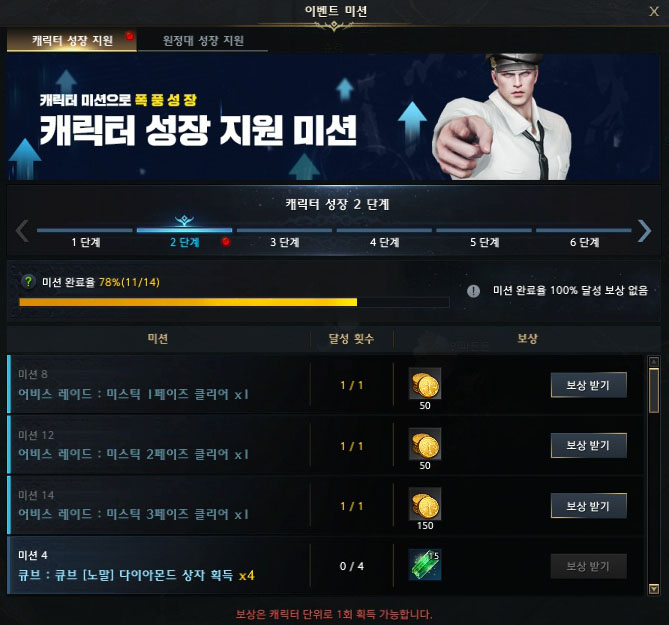 아이템 레벨이 적정 단계를 훌쩍 뛰어넘겼다 할지라도 캐릭터 성장 지원 미션으로 골드를 챙길 수 있으니 1번은 클리어해야한다