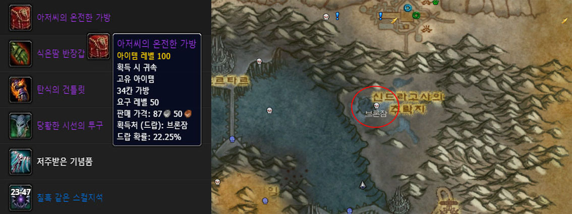 와우 브론잠에게 34칸 가방 얻기(핫픽스 이후 젠타임 수정)