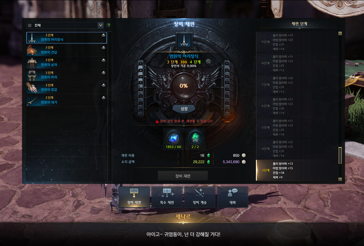 지금부터 공략은 정석대로 재련해서 1325까지 올라가는 방법이다